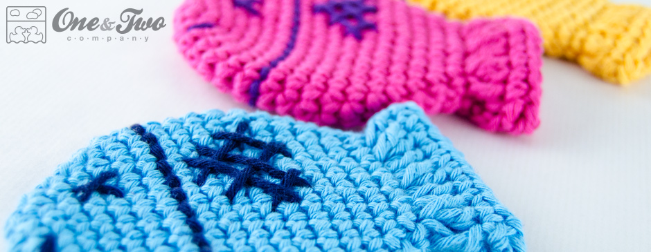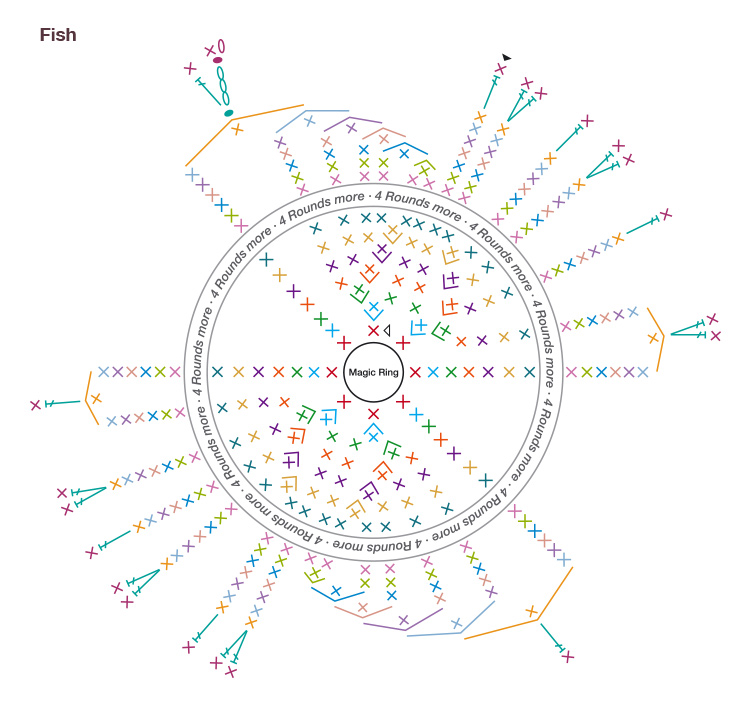 Now with the same color yarn, do a backstitch around the fish, between rounds 7th and 8th.
