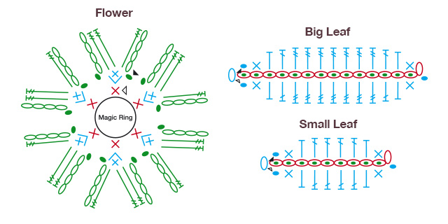 - Worsted Weight Yarn. 3 colors: Green, Pastel Green and Fuchsia.