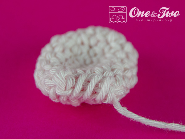 This part is worked continuously. You should use a stitch marker. With Light Pink yarn create a Magic Ring with 6 sc.