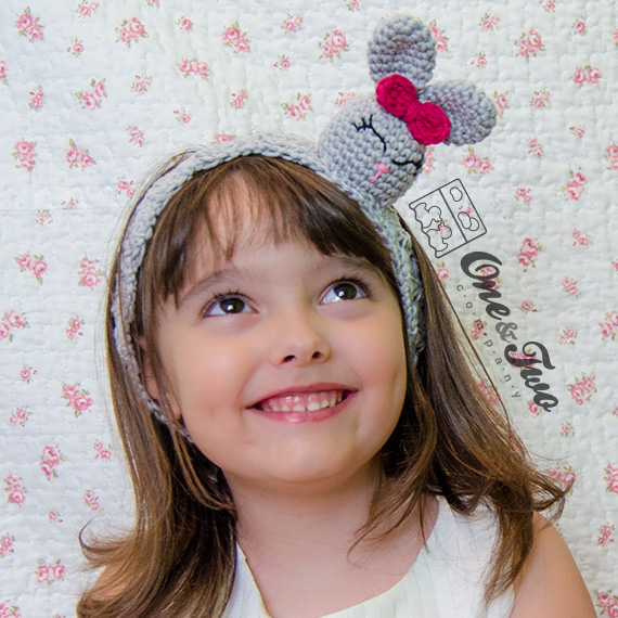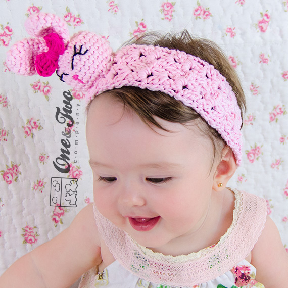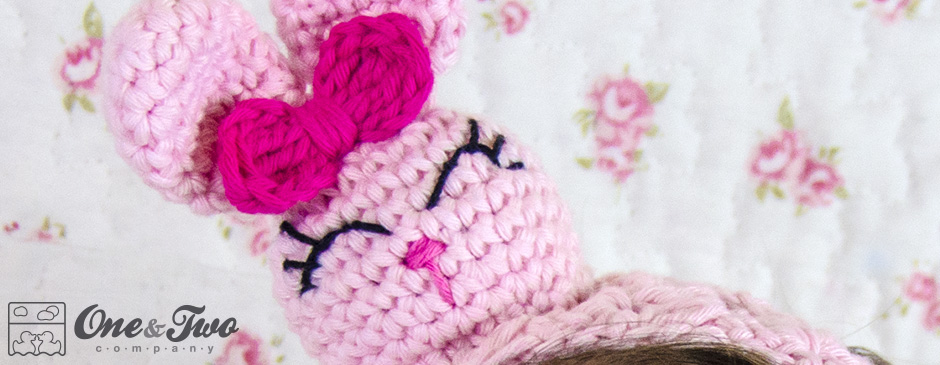 Finally stuff the head. Then, with Light Pink yarn sew the Bunny Head to the Headband. I sewed mine 3 inches to the left of the center of the headband. Fasten off.